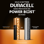 Duracell offre un'ampia gamma di batterie da utizzare in dispositivi elettronici che richiedono un'energia affidabile.Sono batterie alcaline ideali per alimentare tutti i tuoi dispositivi. Duracell Plus AAA ti offre fino al 100% di energia in più* (*rispetto alla durata media minima dei test IEC 2015 con l'utilizzo di una videocamera digitale; i risultati possono variare a seconda del dispositivo e del tipo di utilizzo (sito web IEC)). Le batterie Duracell non utilizzate garantiscono una durata fino a 10 anni, se correttamente conservate nella confezione. Duracell consiglia l'utilizzo di queste batterie nei dispositivi ad uso quotidiano, come giocattoli motorizzati, torce elettriche, dispositivi audio digitali e altro ancora. Nel 1969 Duracell partecipa alla missione Apollo 11 e diventa la prima batteria ad andare sulla luna.